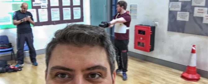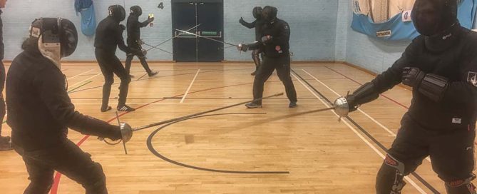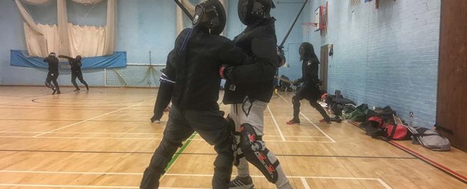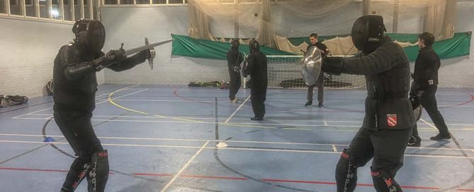 There were three streams of training on offer: Matt taught single rapier, looking at the slip. Jay looked at some close play and grapples, whilst Christophe worked with the beginners focusing on getting them ready for their safety test.
